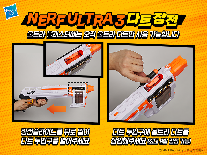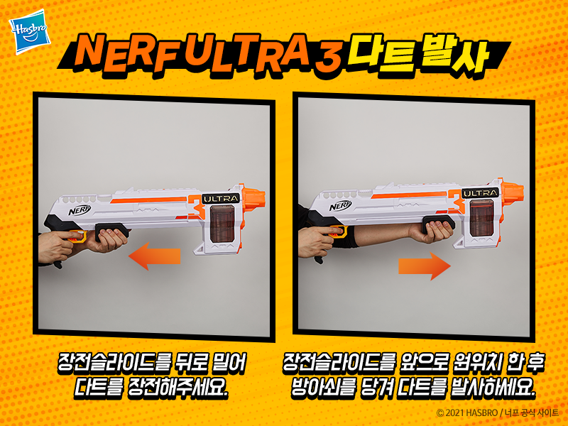 울트라 3의 다트 발사 방법은 블래스터 아래쪽에 위치한 장전 슬라이더를