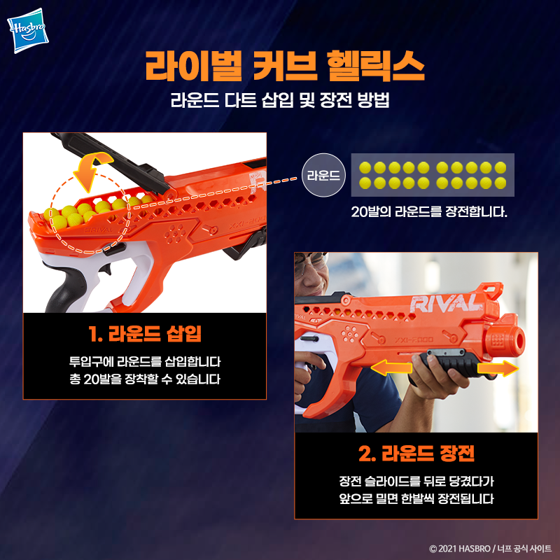 라이벌 커브 헬릭스는 투입구에 총 20발의 라운드를 장착할 수 있으며,