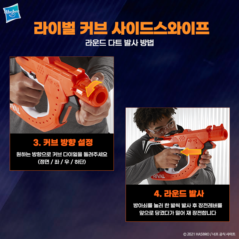 라이벌 커브샷은 커브 다이얼을 돌리는 방향에 따라