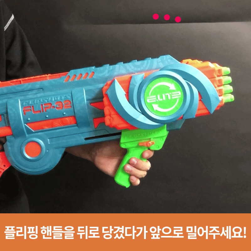 작동시켜 플립 배럴을 회전시키고 쏙쏙~ 다트를 장착해주세요!