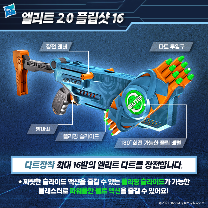 견착 파츠로 안정적인 플립 액션이 가능한 엘리트 2.0 플립샷 16