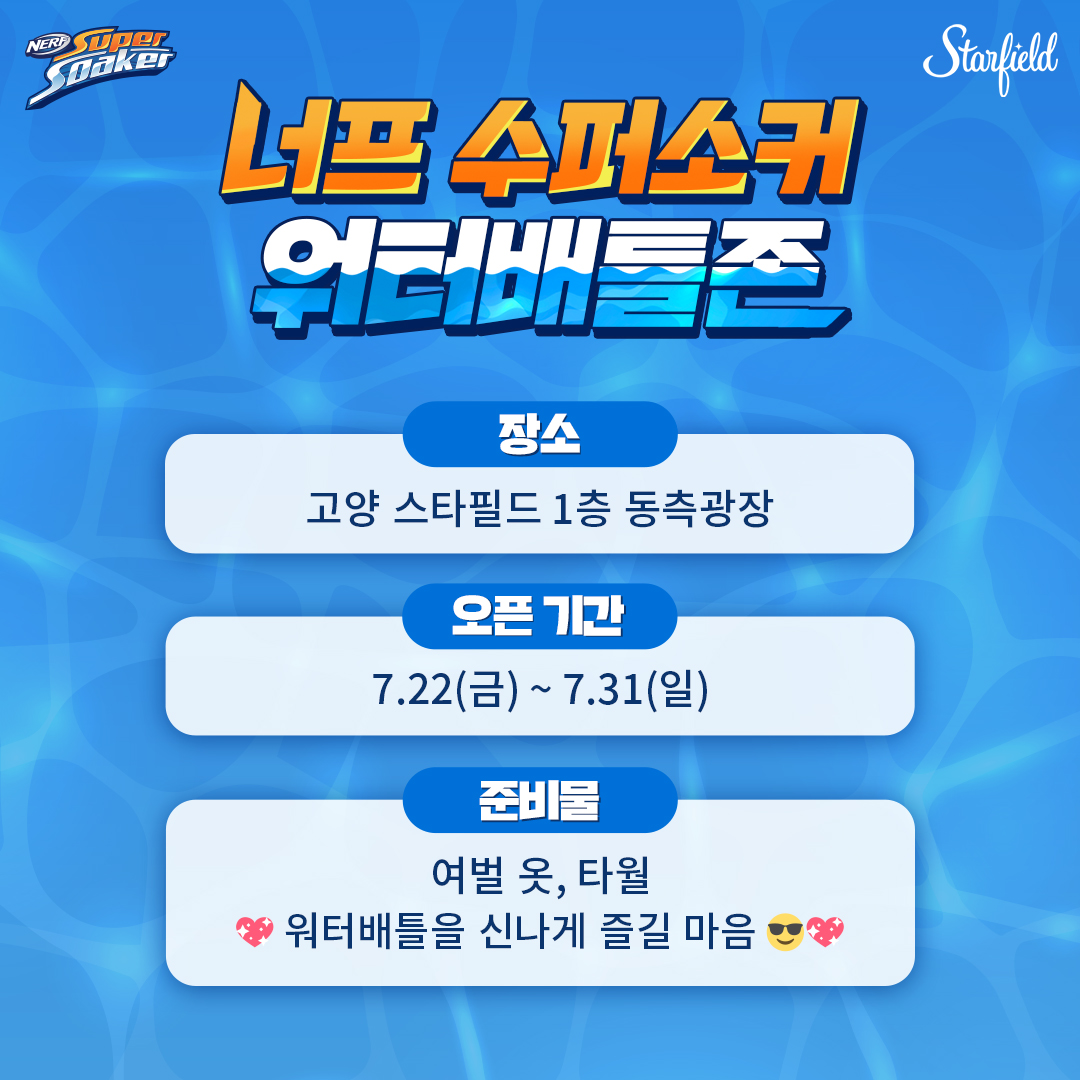 스타필드에서 함께 하는 너프 수퍼소커 워터배틀존! Open💦